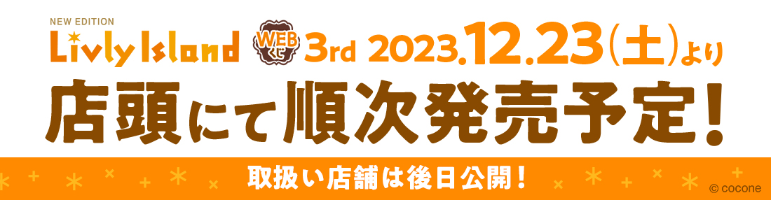 このくじはBOXタイプです! くじのタイプについて現在このくじは販売していません販売店舗一覧ラウンドブランケット全1種類直径約75cmのBIGサイズブランケット! 個性豊かなリヴリーたちが大集合のにぎやかなデザインです♪ サイズ:約φ750mm 素材:ポリエステルミニピロー全1種類両面プリントの可愛いサイズの枕です♪ サイズ:H250mm×W400mm 素材:スエード,中綿クリア窓付きポーチ全2種類片面がクリア仕様で中が見える、便利なポーチです♪ サイズ:H120mm×W150mm×D60mm 素材:ポリエステル,PVCジオラマアクリルスタンド全5種類組立ててジオラマにできるアクリルスタンドです♪ 以前のアクリルスタンドキーホルダーをセットしても楽しめます♪ 板サイズ:H150mm×W200mm 素材:アクリル(3mm厚)カラーアクリルキーホルダー全6種類クリア感がかわいい、ポップなアクリルキーホルダーです♪ サイズ:H70mm×W50mm以内 素材:アクリル(3mm厚),ナスカンA5クリアファイル&ステッカーセット全6種類使いやすいA5サイズのクリアファイルとポストカードサイズのステッカーのセット♪ サイズ クリアファイル:H220mm×W153mm ステッカー:H100mm×W148mm 素材:PP,アートタック紙doodoo缶バッジ全20種類全20種類のリヴリーたちが/poop! doodoo風パーツ付の、集めてかわいい缶バッジです♪ サイズ:Φ57mm+doodoo風パーツ 素材:ブリキ,金属,アクリルジオラマアクリルスタンド全1種類BOXのくじをすべて引き終えると必ずもらえる豪華特典! ピグミーたちが/poopしているジオラマアクリルスタンドです♪ ※オンライン販売と店頭販売で商品が異なります。 板サイズ:H150mm×W300mm 素材:アクリル(3mm厚)ポストカード全8種類1会計につき5枚購入ごとにランダムで1枚必ずもらえる、全8種のポストカード! (10枚まとめて購入時はランダムで2枚もらえます) ※こちらはオンラインでくじを購入された方のみでのプレゼントとなります。 店頭での配布はございませんので、ご了承ください。 サイズ:H140mm×W90mm 素材:紙アクリルスマホスタンド全1種類くじ購入枚数がそのまま応募数に! くじを購入されたお客様の中から抽選で10名様に「アクリルスマホスタンド」をプレゼント! 店頭で購入された方はくじ半券のシリアルコードを使って応募いただけます。 サイズ:H143mm×W70mm 素材:アクリル(3mm厚)